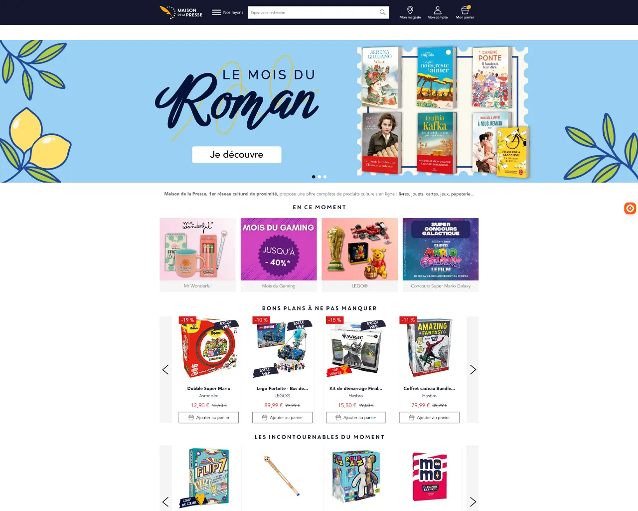 Maison de la Presse vous propose une offre complète de produits culturels : livres, jeux, jouets, papeterie, cadeaux, confiserie et Presse.
