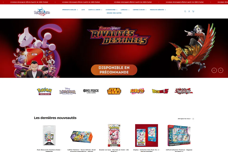 Nous avons sélectionné ces boutiques Pokémon car elles sont reconnues pour leur fiabilité, leur sérieux et leur expérience dans la vente de cartes à collectionner. Chaque site listé a été vérifié par notre équipe et recommandé par des membres de la communauté. Que ce soit pour des boosters récents, des cartes à l’unité ou des coffrets collectors, ces vendeurs proposent des produits authentiques et un service client réactif. Notre but est de vous aider à acheter vos cartes TCG en toute sécurité. Cette liste est régulièrement mise à jour pour garantir sa qualité.
